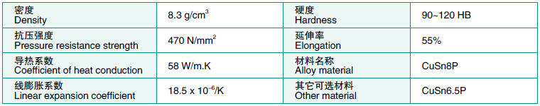 FB09G 青銅固體潤(rùn)滑軸承,是以青銅材料為基體,表面埋入固體潤(rùn)滑劑制作而成。由于以延伸率較高的銅合金材料作為基體,所以可以制成特薄的卷制軸套,再加上理想的填充材料為耐磨劑,因此適用于汽車傳動(dòng)軸內(nèi)作為耐磨的軸套使用,也可以在無(wú)油潤(rùn)滑的其它場(chǎng)合使用。